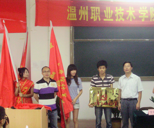 6月23日,温州职业技术学院计算机系在举行了计算机系党员服务中心成立仪式。院学工部部长、院学生处处长、院团委书记蔡后界老师,系党总支书记童炳金,系团总支书记罗小阳老师出席了本次成立仪式。仪式上,童炳金书记就党员服务中心的成立发表讲话,就如何做好党员志愿服务中心、服务队建设和党员志愿服务工作提出了几点工作要求,以及对到场的学生党员和入党积极分子提出了几点希望。他希望学生党员在同学们中能起先锋模范作用,能充分发挥党员的榜样带头作用,牢固树立为广大学生提供服务的意识,希望通过党员服务中心这个平台,不断增强基层党组织的亲和力、创造力、凝聚力和战斗力。同时,仪式上任命金磊达同志为党员服务中心主任,沈芳芳为党员服务中心副主任。