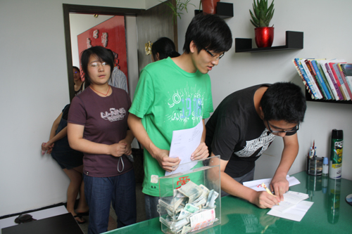 另外,在6月28日全体学生党员举行驻班党员经验交流会上,全体学生党员捐款620元,4位学习风尚奖获得者捐款2100元。