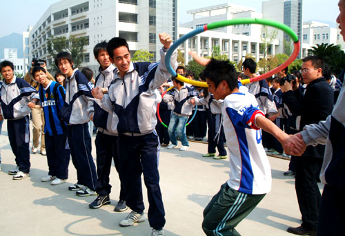 据悉,此次民俗传统体育运动会为期一个月,共设置了22个传统运动、游戏项目,这些项目都是融竞技与娱乐为一体,融时尚体育与传统运动为一体,融体育赛事与公益性社会体育活动为一体,既满足了广大青年的健身要求,又引领了青年体育时尚,受到大学生们和校园中青年教工的欢迎和喜爱。在盛大的开幕式现场,人声鼎沸,共有2000多名学生参与其中,共同享受了校园民俗体育所带来的快乐。记者看到,在享受快乐体育过程中,许多辅导员老师也参与到学生们的活动中,工商系辅导员林祯乐和学生一起玩起了八字绳,几位开会路过的女教师一头扎到“转呼啦圈”的现场,当起了“孩子王”,还不断地教着学生“打转”的心得。老师们脸上没有了以往的严肃,也和大学生们一样多了一份童心。策划此次民俗运动会的温职院工商系党总支书记蔡后界说:“策划举办这样的运动会,主要是想让青年学生们在活动中能够体会到传承文化、回归童真、快乐健身的真正内涵,从而在校园中形成新的运动文化品牌。”