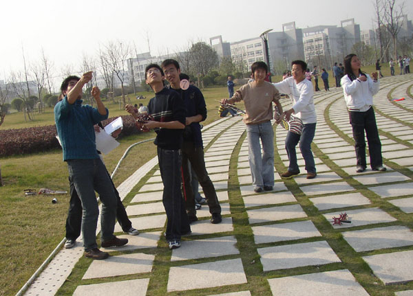 3月10日下午,温州茶山高教园区学子广场上空风筝满天、笑声阵阵,出现了一派“风吹仙袂飘飘举,犹似霓裳羽衣舞”的景象。温职院建工系和机械系团学组织为增进友谊,促进两系团学干部之间的合作的学习和交流举办了风筝飞鸢大赛。据了解,此次比赛吸引不少高教园区其他院校学生的参与。比赛充分体现大学生活的多姿多彩,青春的活力和朝气在比赛中展现得淋漓尽致。