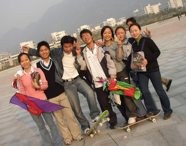 漫天飞舞的风筝承载着同学之间的友谊