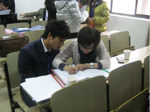指导老师对参赛选手进行答辩前最后指导