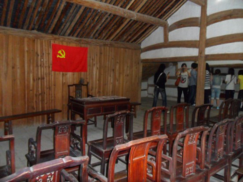 在平阳县凤卧镇中共浙江省委一大会址,我系党员认真听取讲解员的讲解,不时提出自己的问题。1939年7月21日至30日,刘英等26位革命先驱在此召开了中共浙江省第一次代表大会,通过了《目前抗战形势与浙江党的任务的决议》和《告全浙民众书》等13个文件,并选举产生了中共浙江省委员会和出席党的七大代表。省一大会议的胜利召开,对组织发动群众、开展抗日救亡运动奠定了基础,对整个浙江的革命斗争影响深远。
