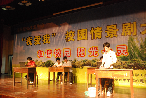 为普及当代大学生的心理健康知识,推动我院心理健康教育工作的开展,营造良好的心理健康氛围,展现当代大学生的风采,5月25日晚,学生处心理健康教育中心在信息楼报告厅成功举办了“大学生校园心理情景剧比赛”。