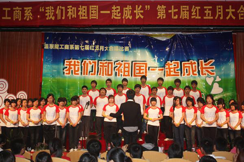 5月21日晚,我院工商系举办了以“我们和祖国一起成长”为主题的红五月大合唱比赛。来自工商系的22个班级参与了本次活动。