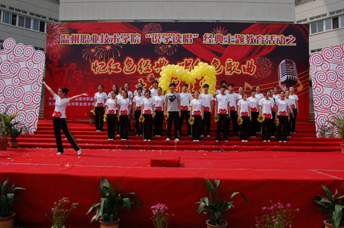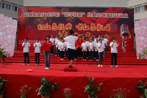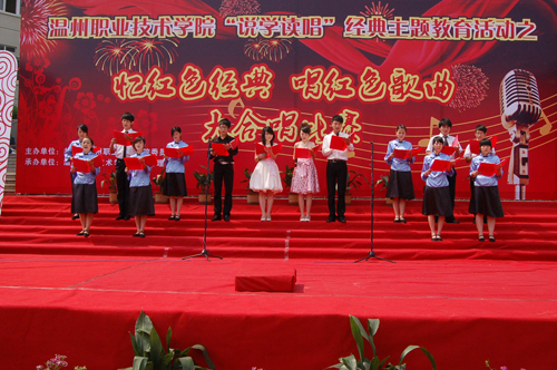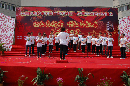 5月26日下午,由院团委主办,工商系团学组织承办的“说学读唱”主题教育活动之“忆红色经典•唱红色歌曲”大合唱比赛在院信息楼前如期举行。