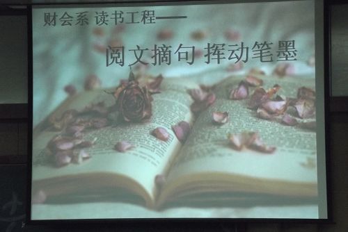 财会系读书工程作为校园文化品牌活动的系列之一,致力于丰富校园文化活动,激发学生读书创作热情,全面提高学生的综合素质。我们倡议全院的学生都能积极投身到读书活动中来,为创建充满书香的文化校园而努力。