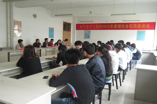 为进一步做好暑期社会实践的归纳总结工作,电气电子工程系于2012年10月31日在实训2号楼206举行2012年暑期社会实践座谈会。系暑期实践领导小组全体成员、系暑期实践优秀指导老师代表、系各暑期实践队成员代表30余人参加。系党总支书记晁拥军主持了座谈会。