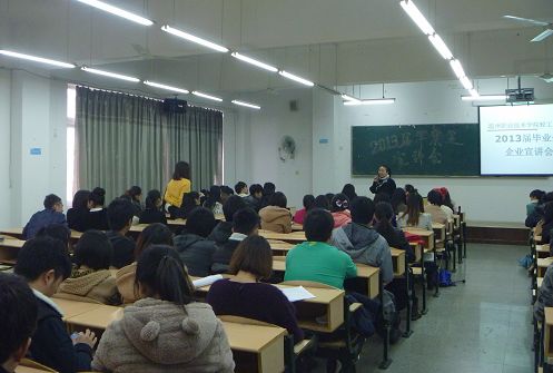 宣讲会上,温州市易玛商贸有限公司、浙江新中梁房地产开发有限公司、三星公司的公司代表分别从企业的规模、企业文化、招聘岗位、员工的职业发展等方面向我系毕业生进行了详细的介绍。其中,温州市易玛商贸有限公司的人力资源部经理还结合实际工作经验从职业道德、职业素质等方面向同学们做了生动的讲座,赢得了在场学生的热烈的掌声。