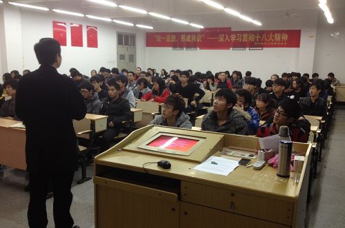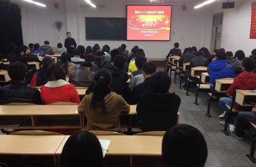 为进一步凝聚共识、统一思想,积聚我系和谐发展的正能量,经系党总支统一安排,电气电子工程系于12月17日晚在实训2号楼514举行党的十八大精神宣讲会。系级各学生组织主要干部、系学生党员、系各班级主要干部百余人参加宣讲会。系党总支书记晁拥军作了专题报告。