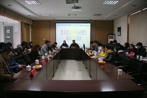 12月19日下午,学院招生就业处在人文系一楼会议室组织召开“校友就业导师与在校生代表面对面交流会”。