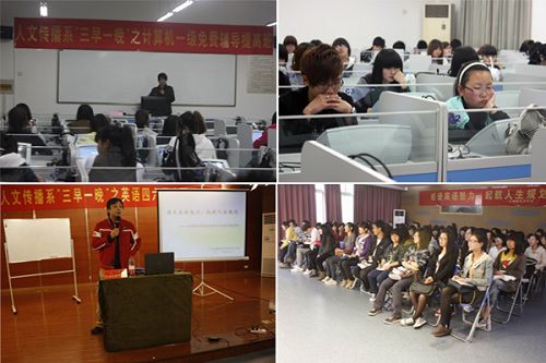 此外,针对在考级考证等方面存在困难的学生,系部邀请专业教师在晚自修期间展开主题培训,免费为学生辅导,希望通过此举让部分学生能够带着“上进”进免费提高班,从而顺利通过考试。据悉,三、四月份期间,人文传播系已开展过两次计算机一级免费培训和一次英语四、六级专项免费培训;在五月中下旬,系部还会开展英语A级免费培训。