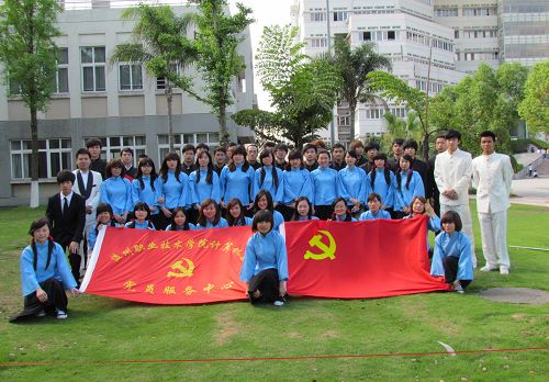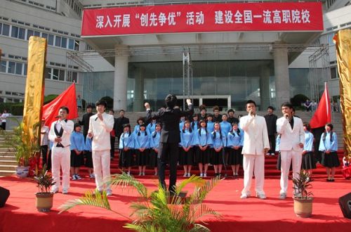 5月18日下午,由院团委主办,工商系承办的“唱支红歌给党听”大合唱比赛在院信息楼前如期举行。