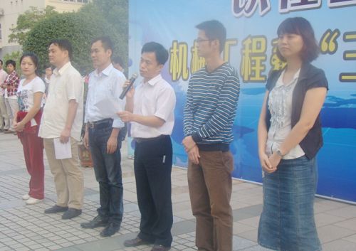 为进一步推进和深入开展“三早一晚”活动,2011年10月17日下午,机械工程系在学院信息楼前举行了以社团组织为依托的“三早一晚”活动启动仪式。 机械系系主任吴百中、党总支书记黄加銮、副主任游震洲,学生处副处长苏跃飞等出席了启动仪式,系学工办全体教师及各班班主任、全系学生参加了本次启动仪式。启动仪式由游震洲副主任主持。