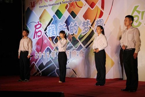 此次晚会融合了古典乐、歌曲、舞蹈、朗诵、嘻哈等各方面元素。街舞协会带来的街舞表演《Do some funky,please》,艺术团舞蹈队的《风筝》、《花腰花》,让观众在享受视觉大餐的同时感悟音乐中传达的宁静。此外,组合唱《相亲相爱》及独唱《坏天使》、《其实很爱你》、《海芋恋》等,都以独特的嗓音征服了全场观众。大一新生邓天宇的小提琴演奏《丰收渔歌》和林婷同学的古筝曲目《战台风》更是以娴熟而高超的弹奏技巧博得阵阵喝彩。最后,持续近2小时的晚会在2011年“温州职业技术学院新生才艺大赛”的颁奖典礼中画上了一个圆满的句号。