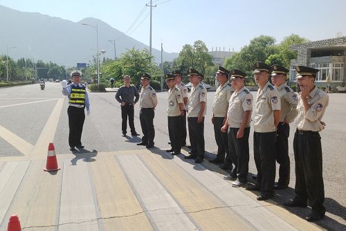 为进一步提高学院保卫队伍的自身素质,10月18日上午,院保卫处邀请了交警四大队八中队黄钢中队长,为我院经济护卫队队员进行了交通指挥手势培训。培训中,队员们认真学习,收到了良好效果。
