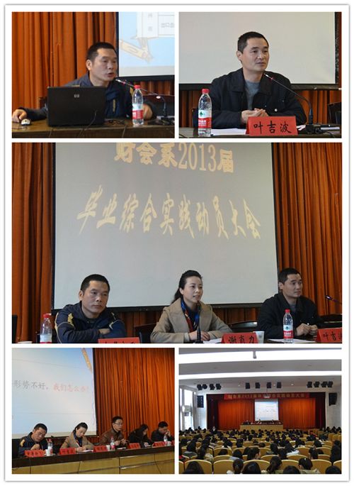 12月28日上午,财会系在信息楼报告厅召开“财会系2013届毕业综合实践动员大会”。出席会议的有学生处处长叶吉波、系主任申屠新飞、党总支书记谢肖力、副主任简家进、实训科科长徐宁蔓、会计教研室孙俊科老师及大三的全体学生,会议由系主任申屠新飞主持。