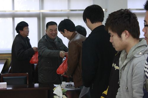 首先,与会的学生代表逐一做了自我介绍,畅谈了学习生活情况以及今后职业规划和就业意向,并对支部党员老师的关心照顾表示衷心感谢。谷智静、童炳金、纪定峰和金建孟等党员老师在会上先后做了发言。谷智静处长希望同学们平时要多与支部联系沟通,不论是生活问题还是就业困惑,都可以直接找支部反映情况,支部一定会尽量予以帮助,并表示今后将继续关心支持党员“三联系”学生。童炳金书记希望同学们认真对待毕业课题设计,找到工作后,要珍惜工作机会,走岗位成才之路。纪定峰老师希望同学们要加强沟通,加强联系,提高自身素质,找到心仪岗位。金建孟老师向同学们介绍了温州IT业的就业形势和特点,勉励同学们结合所学专业,先立足再谋发展,持之以恒,忠于职守,甘于奉献。会后,支部党员老师还向同学们赠送了橘子水果等礼物,祝愿同学们新年吉祥,前程似锦!