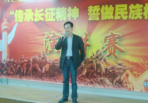 为进一步建设“唱响红色旋律,弘扬先进文化”党建工作品牌,强化学生的人文艺术修养,提升学生的综合素质,在中国长征胜利75周年之际,机械工程系于2011年10月30日下午3点,在实训三号楼514 教室举办了以“传承长征精神,誓做民族栋梁”为主题的演讲比赛。机械系党总支书记黄加銮出席了本次演讲比赛。