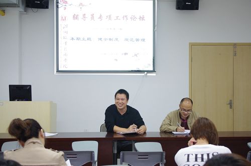 11月8日上午,学生处在大学生活动中心212室举办以“健全制度,规范管理”为主题的本学期第二期辅导员专项工作论坛。论坛由院党委委员、学生处处长蔡后界主持,学生处副处长苏跃飞及各系辅导员、学生处全体工作人员参加了此次论坛。