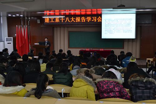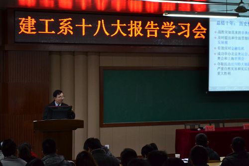 为更好的学习、理解、贯彻党的十八大精神,建工系于1月5日下午在教学3号楼101教室举行了“建工系十八大报告学习会”,特邀温州市委党校文化与社会学教研部主任陈中权教授为全系教职工、党员、预备党员以及入党积极分子宣讲十八大报告。