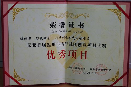 由中共温州市委宣传部、团市委、教育局等七大部门共同推出的2012年全市首届青年社团创意项目大赛决赛,1月9日在市青少年活动中心落幕,比赛结果于近日揭晓。由建筑工程系团总支申报的“绿色地图社区实践计划项目”参与了学校组的角逐,获得全市优秀青年社团创意项目。