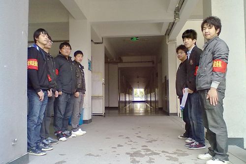 早晨教学2号楼前学风检查