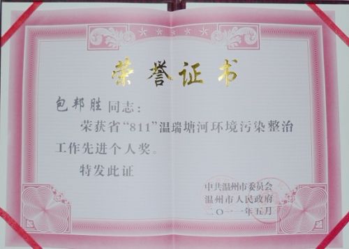 近日,市委、市政府表彰省“811”温瑞塘河环境污染整治工作先进集体和先进个人,我院建筑工程系辅导员包邦胜荣获省“811”温瑞塘河环境污染整治工作先进个人奖。