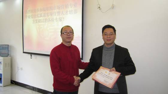 工商系系主任朱长丰在会上致辞,并向营销专业企业专家发放了聘书。市场营销教研室主任易淼清向与会企业经理们介绍了我院工商系市场营销专业毕业综合实践及人才培养方案改革的思考。与会专家围绕“毕业综合实践真实项目”、“市场营销专业人才培养方案”作了主题发言,就产业结构的变化、行业发展的趋势、市场营销的走势、企业营销战略和用人的需要,以及企业的人才标准、人才渠道等内容作了阐述。精彩的发言让在座的专业老师受益匪浅,给市场营销专业毕业综合实践真实项目以及2012级人才培养方案的修订带来了很多的启发。