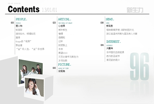 《新生力》是温职院人文传播系主办,新生力杂志社承办,集“星人物”、“心世界”、“欣视角”、“新讯息”、“兴趣味”于一体的综合性高校电子刊物。