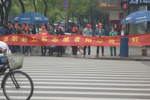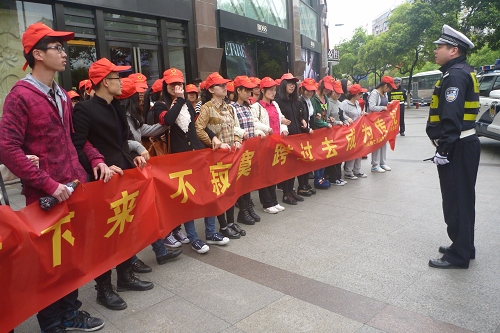 3月23日轻工系社工部和红色先锋班的志愿者们在市区开展了人肉斑马线的活动。