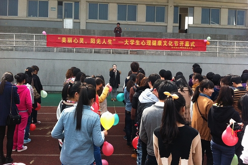 3月27日下午,以“美丽心灵,阳光人生”为主题的大学生心理健康文化节开幕式在操场举行,学生处副处长吴冰,心理指导老师赵生玉,院心理发展委员会的学生干部、各系心理部的干事和全体心理委员参加了此次开幕式。