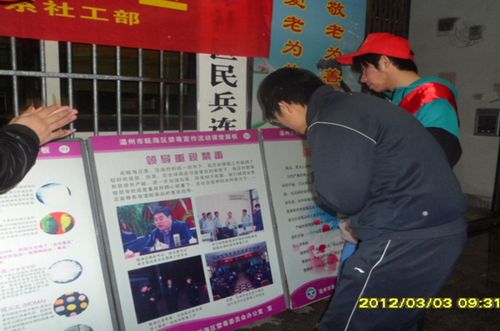 3月3日,我院工商系学生深入温州市龙潭社区进行了一场禁毒宣传教育活动。 活动中,工商系学生联合该社区街道办、派出所工作人员,在该社区悬挂横幅,张贴宣传画,发放宣传资料,并对群众进行毒品知识的讲解,且由学校三个俱乐部成员教社区中的部分妇女以折花的形式,来共同宣传此次活动。