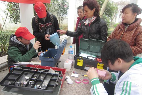 入党积极分子、志愿者到达社区后就拿出铲子给树苗铲一块足以栖息的小地,有的还提着重重的铁桶给快枯萎的小树浇水,有的为刚种上的树苗挂上了电气系自制的标语,大家热情激昂,积极地响应了“种一颗小树,绿一方净土”这一主题。此外电气系入党积极分子、志愿者还为社区居民开展免费家电维修活动。维修小组在小区的花园中形成自己的小维修区,吸引了居民们到来。一下午为社区居民免费维修电饭煲、电吹风、电热水壶等小家电20余件,受到社区居民的热烈欢迎。