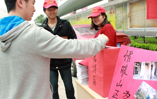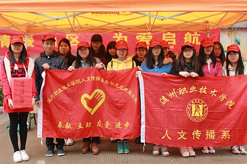 3月25日,温州职业技术学院人文传播系社工部于第一餐厅前开展了以“情暖山区,为爱启航”为主题的山区募捐活动。此次活动主要是为了体现温州职业技术学院学子的对山区贫困学生的关心,在严寒中送温暖,传知识的过程。