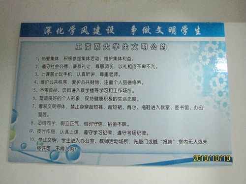 为了更好地营造工商系学风建设主题教育月的宣传氛围,我系还特地开设《工商系班级学风建设公开承诺墙》,2010级10个班级班委集体亮相,每个班级对做好班级学风建设做出公开承诺。公开承诺墙增强了同学们对本次活动的认识,真正达到了延长学习时间、锻炼自我管理能力、养成高昂的学习生活态度的目标。