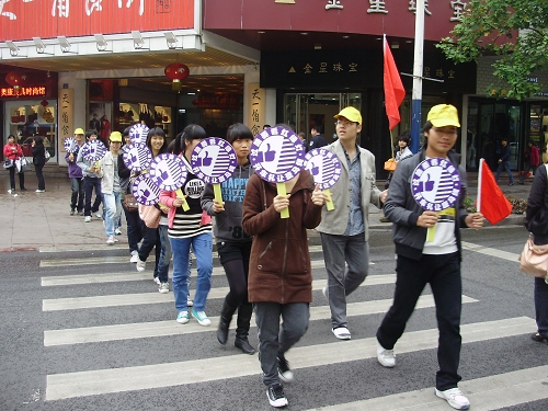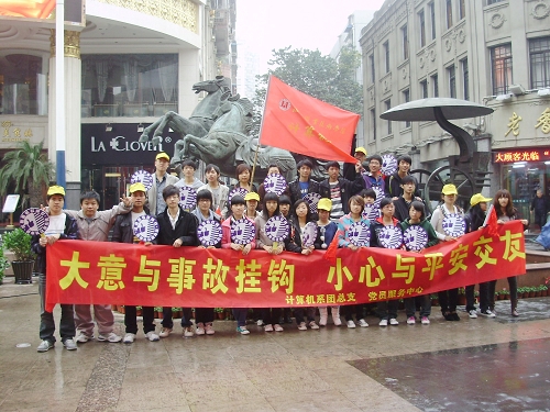 11月21日上午,计算机系党员服务中心志愿服务队在温州五马街开展了以“大意与事故挂钩,小心与平安交友”为主题的道路交通安全知识宣传活动。