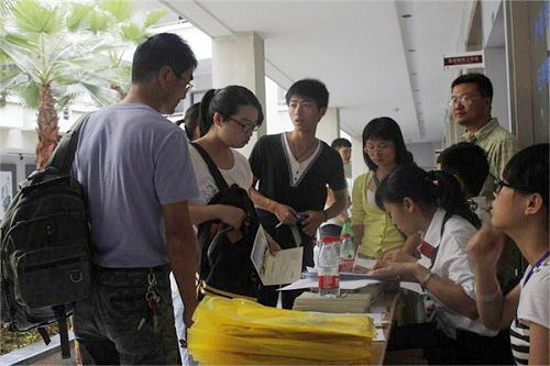 7点30分,校门口已是人头攒动,来自各地的莘莘学子相继到校报道,迈入人生新的旅程。新生报到处、班主任注册登记处、住宿登记处、校园一卡通领取处等一系列周密的部署确保了迎新工作高效有序的展开。当班主任们向新生家长提议可在楼前与孩子合影留念,家长们均觉得新奇又惊喜,纷纷填写了摄影单,留住这特殊的一刻。据悉,人文系的摄影工作室将在迎新后将所有照片洗出来,在中秋之际邮寄到新生家里,以慰家长的思念之情。