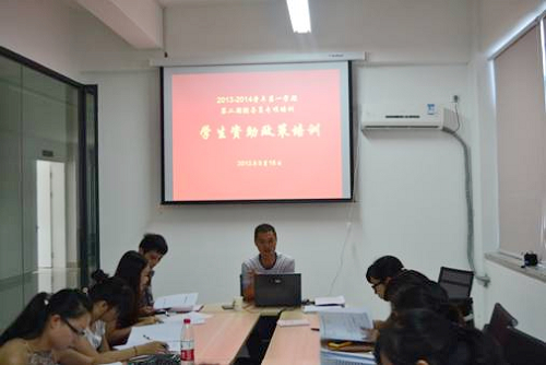 会上,学生管理科负责资助项目的同志给与会的辅导员作了学生资助政策的简介,结合学院实际情况对高校学生资助政策体系、主要内容及工作流程、贫困生认定等方面的工作进行了说明。之后,计算机系辅导员李文静老师分享了她多年从事困难学生资助工作的经验,与会的各系辅导员积极参与讨论,就以往工作中遇到的问题、工作心得等进行了交流。