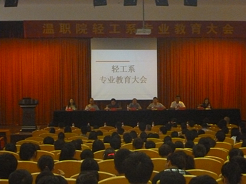 9月18日中午,轻工系在校树人堂举行了2013级“温职院轻工系专业教育大会”。出席大会的有系主任施凯老师、系书记吴建明老师、系副主任杜少勋老师、各个专业负责老师等。