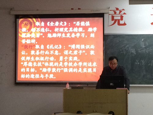本次学风研讨会的主题为:“反思、讨论、进步、成长”,研讨会共进行4项议程,分别为:学风的含义;“一训三风”的内涵和重要作用;反思讨论现存的学风问题;对学风建设的意见和建议。