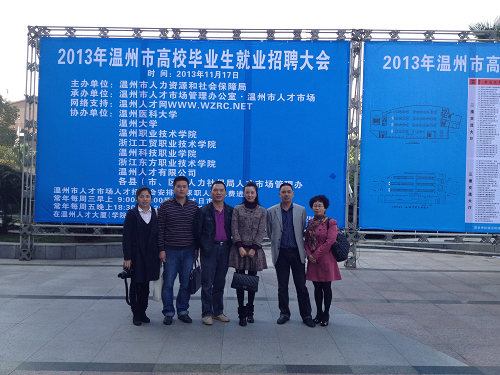 2013年温州市高校毕业生就业招聘大会,由温州市人力资源和社会保障局主办,温州市人才市场管理·温州市人才市场承办,共吸引了400余家用人单位参加,其中提供财务类相关岗位300余个。小组首先对其中招聘财务类职位的单位进行深入分析,帮助学生找出选择重点,并向同学们介绍了本次招聘会的情况。在老师的悉心指导下,学生们有针对性的去了解适合自己的企业与岗位,有重点的投放简历,有效节省了时间。结束了对学生的指导后,小组成员进入招聘会展厅,对各企业进行深入了解;与有招聘财务类岗位的企业相关负责人交换名片,并简要介绍我系应届毕业生的基本情况,为以后学生就业做足准备工作。来自温州晚报的记者余日迁对我系领导班子和老师主动出击为毕业生寻找岗位、为学生服务的做法予以了肯定。