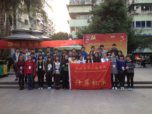 1116,温职院信息技术系的同学们来到清风社区为社区的换届大会进行了为期一天的志愿者活动。参加此次活动的有来自信息技术系不同专业的志愿者共37名。本次活动得到了南汇街道领导及社区工作人员的一致好评。