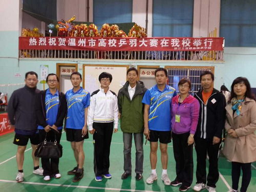 11月23日上午8点30分,由中共温州市委宣传部、共青团温州市委、温州市精神文明建设指导委员会办公室、温州市教育局、温州市文化广电新闻出版局、温州广电传媒集团、温州市学生联合会共同举办、为期二天的温州市高校羽毛球、乒乓球大赛在浙江工贸职业技术学院举行开幕式,我院教工羽毛球、乒乓球协会的二支代表队偕同院学生代表队出战。