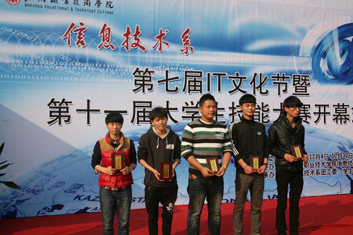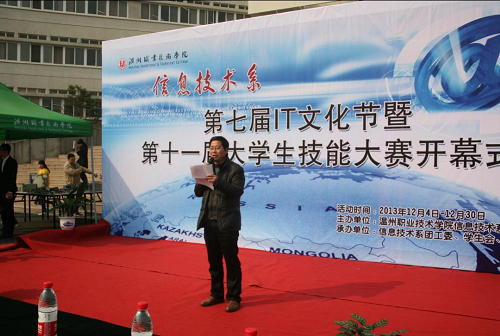 为增强职业技能,发扬IT精神,12月4日下午信息技术系第七届IT文化节暨第十一届大学生技能大赛开幕式在我院明德广场隆重举行,出席本次开幕式的嘉宾有系主任田启明l老师、系党总支书记童炳金老师、系学工办主任罗小阳老师、实训科主任张浩老师以及我系多位评委老师。