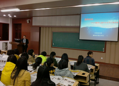 为了使当代大学生更好的了解电子商务运营,12月11日下午,温商论坛暨信息技术系第七届IT文化节之《微讲堂》于崇学楼201教室举行,各系老师、学生聆听了此次讲座,本次讲堂有幸邀请到了温州世家福德网络CEO、微站落地执行系统首创者、微店商商业模式首席导师刘化亮先生。