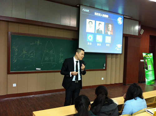 在本次讲座上,刘华亮先生就三个要点做了介绍,包括:互联网的发展趋势,掌握微电商的运营精髓、如何利用微信做好品牌宣传。随后,他又介绍了网即通的产品,包括:移动汇报、手机微站(微店+微商城)等,其功能演示、使用的便捷之处都让在座的同学和老师感到移动互联网的奇妙。