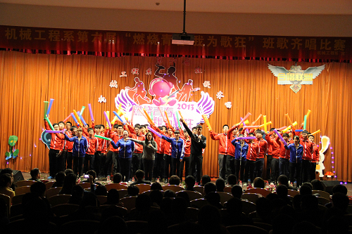 12月16日晚,机械工程系在树人堂报告厅举办了以“燃烧青春,我为歌狂”为主题的班歌比赛。系主任南秀蓉老师、系党总支书记黄加銮老师、系副主任游震洲老师、系学工办及兄弟系部学工办老师、新生班主任应邀出席了晚会。