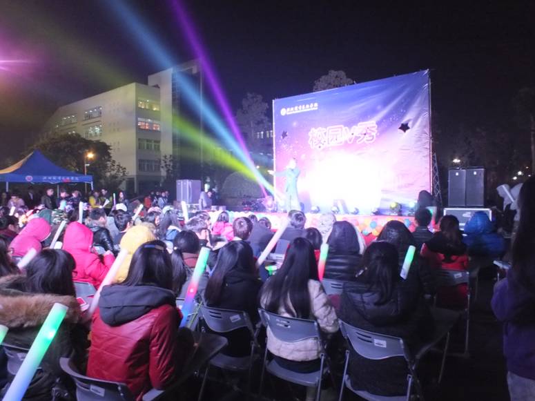 近日,院大学生艺术团在图书馆正门口举办了以“艺术盛会 大众舞台”为主题的大学生艺术团汇报演出暨“校园V秀”晚会。人文系主任田正老师、机械系党总支书记黄加銮老师、院团委副书记刘海明老师出席晚会。