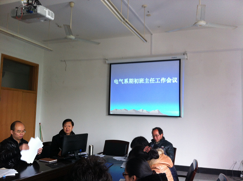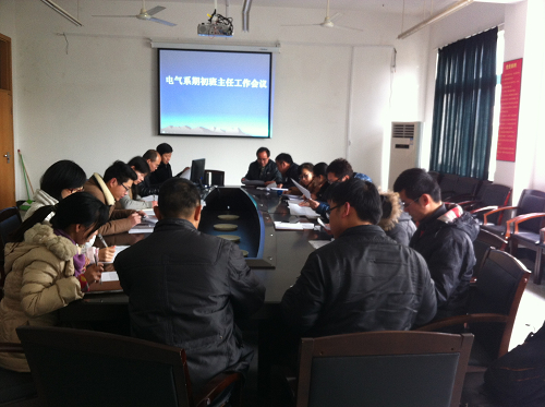 2月19日下午电气系在系会议室召开了 2013-2014学年第二学期期初班主任工作会议,本次会议由系党总支书记晁拥军主持,系辅导员及各班班主任参加了会议。